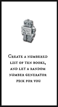 | Novelty Card Robot Create a numbered list of ten books, and let a random number generator pick for you. |