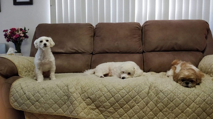 Here's a little pic of all three of the doggies, including our very own Baby, all enjoying a leisurely afternoon on said couch.